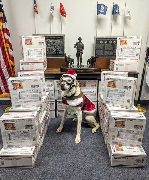 The generosity of Friends of CHS even reaches around the globe. Their military collection project—in its 15th year—began as a way to brighten the holidays for Kansas troops stationed overseas. More than 1,400 boxes were shipped through the program. When pandemic restrictions halted the shipment of care packages to soldiers, the auxiliary partnered with the U.S. War Dogs Association and began collecting monetary donations to meet the specific needs of military canines and their handlers. In 2023, they collected an impressive $5,774.30. In addition to monetary donations, students from all schools in Coffey County made cards and letters for the troops, and a 4-H club collected doggie treats.
